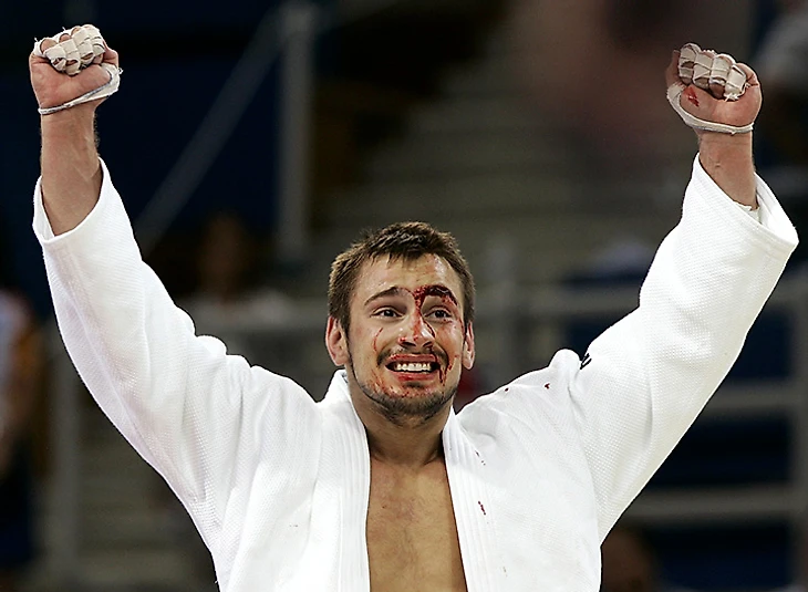Дмитрий Носов, возможно, самый яркий пример того, как за счет одной спортивной победы можно построить большую неспортивную карьеру. Дзюдоист Носов прославился на всю Россию, когда на Олимпийских играх-2004 выиграл бронзовую медаль, хотя в решающей схватке он мог бороться только одной рукой. Счастливый и истекающий кровью Носов – один из самых запоминающихся кадров той Олимпиады.