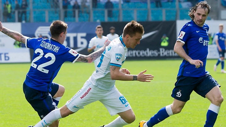 «Динамо»: Шунин - КОЗЛОВ, Шуньич, Рыков, С.Терехов - Соу, Зотов - Темников, Панченко, Ташаев - БЕЧИРАЙ.