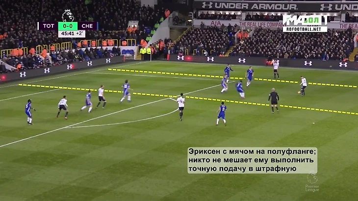 И численно превосходство Тоттенхэма, это как раз самый настоящий тактический момент. Если бы во время прессинга Эриксен не смещался в центр, у "шпор" бы не было преимущества в этой зоне, не было бы кому подстраховать в случае ошибки. Из ситуации 2 в 2 выйти победителем куда проще, чем из 2 в 3.
