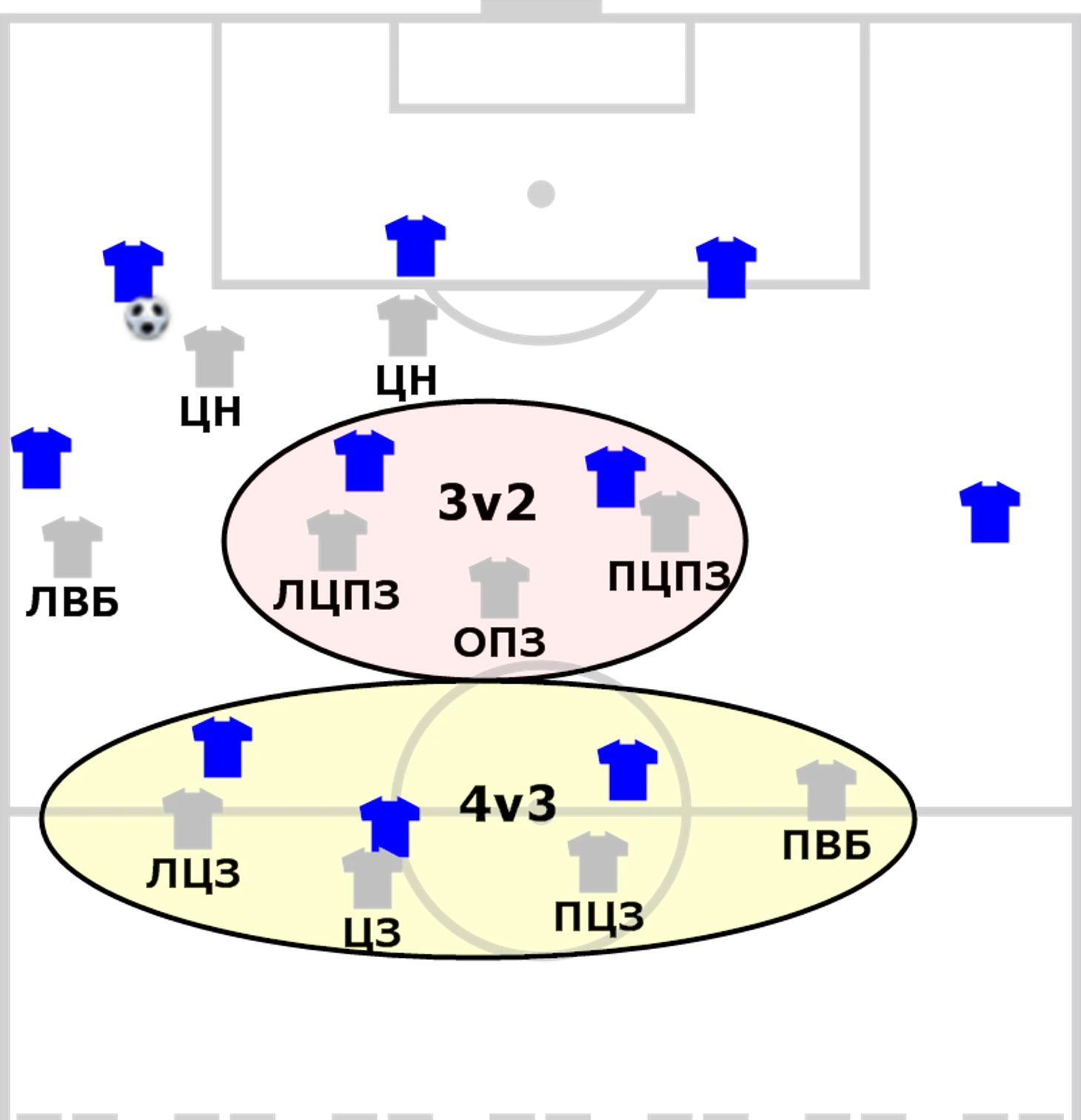 Понятно что чем больше игроков успевают играть в обороне и в атаке, тем выше их численное превосходство там где мяч.