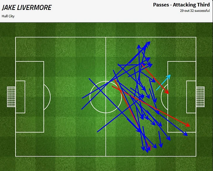 Джейк Ливермор («Халл»). Кажется, его уже хвалили, когда он исполнял роль центрального защитника, теперь самое время отметить Джейка на позиции в центре поля. При наличии Тома Хаддлстоуна обладающего хорошим первым пасом, ключевой роль в центре поля у «тигров» играл именно Ливермор. Он стал самым вовлеченным в игру (93 касания), чаще всех пасовал: 78 передач с точностью 93,6% при том, что 41% передач направлен в атакующую треть с точностью 90%. При этом это были не просто передачи поперек поля, а диагонали и лонгболлы развивающие атаку. Именно такой заброс на Аль-Мухаммади начал голевую атаку. В тоже время Ливермор весьма цепко действовал в оборонительной фазе: на его счету 5 отборов, второй показатель в команде после Сэма Клукаса (6)