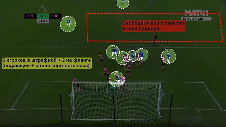 «Эвертон» спасает матч переходом на 4-2-2-2. В последних двух турах события в матчах «Эвертона» развивались по схожим сценариям: первый тайм проходит с небольшим перевесом «ирисок» во владении мячом, затем приблизительное равенство в первой половине 2-го тайма, а потом (сразу же после перехода на 4-2-2-2) наступает период полного доминирования команды Рональда Кумана. В матче против «Халла» катализатором послужил выход Кэлверта-Льюина, а против «Саутгемптона» – появление Эннера Валенсии. И в первом, и во втором случае смена схемы помогла «Эвертону» переломить ход игры и соответственно вырвать ничью/оформить победу.