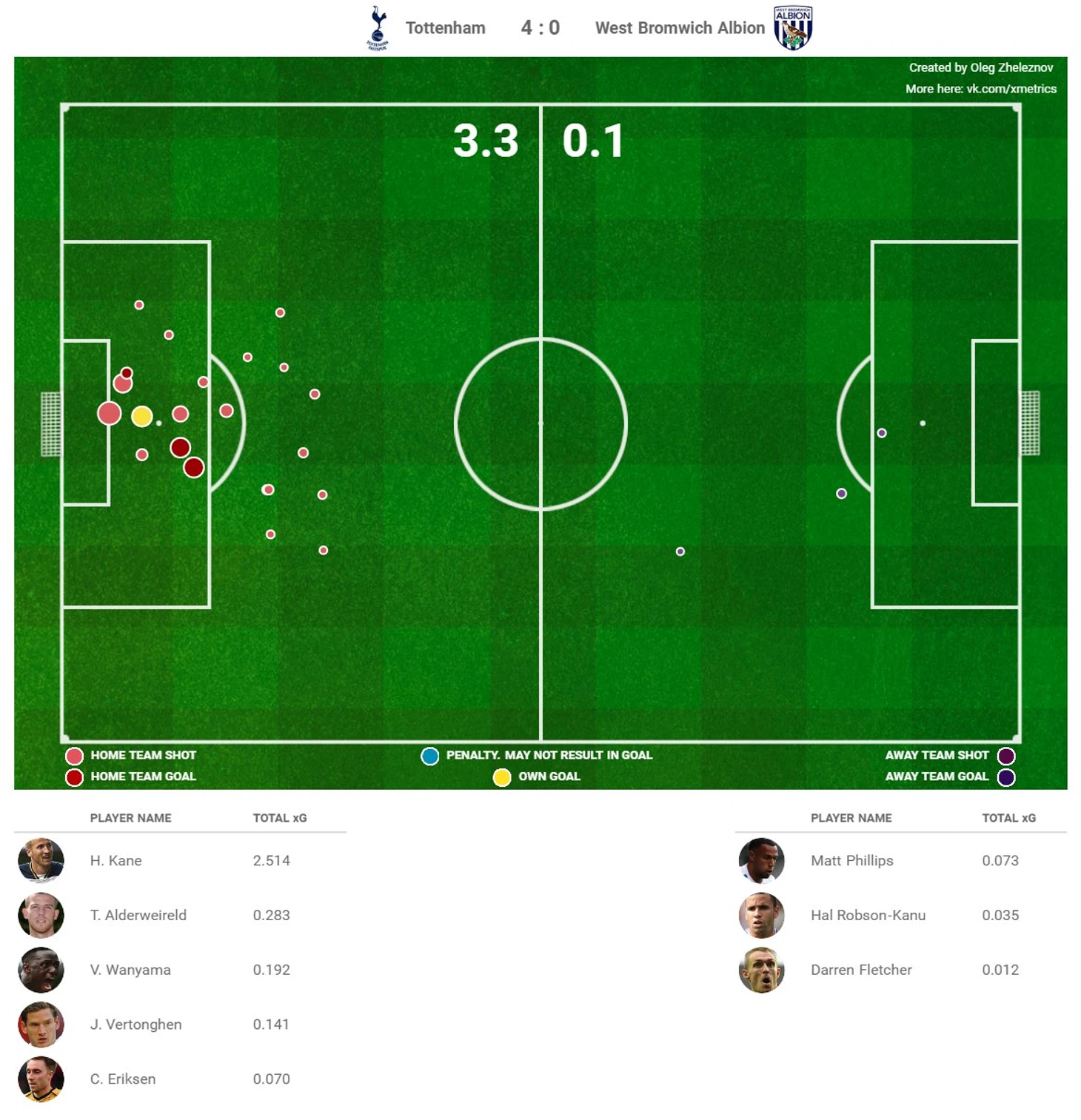 3-4-3 в этом сезоне не попробовал только ленивый, и в каждой команде есть свои причины в пользу этой схемы. В случае «шпор», такая расстановка и роли игроков позволяют намного лучше контролировать темп игры и создавать более качественные моменты. Хотя все еще существует проблема дальних ударов – команда Почеттино частенько сбивается на неэффективные попытки от Дембеле и Эриксена. В прошедшем матче, около 40 минут «Тоттэнхем» после второго гола не создавал настоящей опасности, просто потому что в ситуациях, когда лучше было бы придержать мяч и найти другой вариант развития атаки, игроки били по воротам. Такое может пройти, но не случись автогол ситуация была бы намного более скользкой. Про «Вест Бромвич» особо нечего сказать – в таких случаях уместна фраза «играла одна команда».
