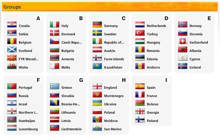 Группа A: Хорватия, Сербия, Бельгия, Шотландия, Македония, Уэльс