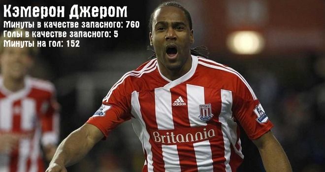 Начинаем с игрока «Сток Сити», который забил 5 мячей, выходя на замену. Учитывая, что порой Тони Пулис выпускает Джерома со скамейки не в нападение, а на левый фланг полузащиты, результат более, чем достойный.