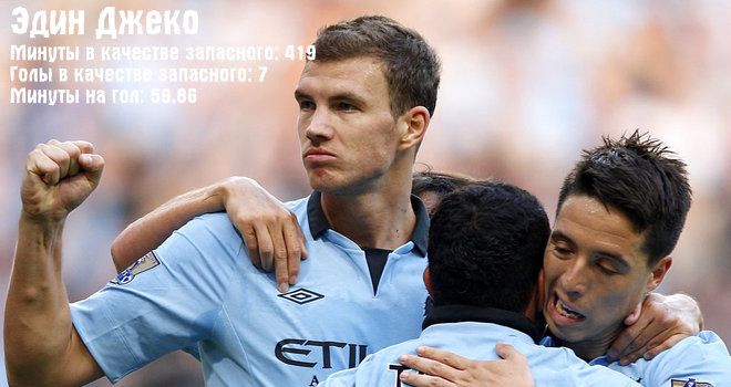 Джеко можно любить или ненавидеть, но он умеет действовать хладнокровно во время своих выходов на замену. Безусловно, свой самый важный гол со скамейки он забил в прошлогоднем «золотом» матче против КПР на «Этихад Стэйдиум». Быть может, не так уж плохо для «горожан», что летом он так и не сменил клуб. 7 голов, 419 минут, 60 (59,86) минут на гол – первое место!