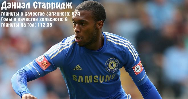 Старридж, выходя со скамейки, забил на один мяч меньше Робина ван Перси, однако лучшая эффективность выраженная в минутах (112,33 минуты на гол) помогла ему обойти голландца в рейтинге. Стоит заменить, что Дэниэла есть очень неплохие перспективы роста, так как в этом сезоне ему, вероятно, придется довольствоваться именно выходами на замену.
