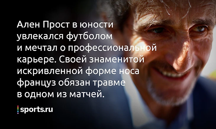 Четырехкратный чемпион мира Ален Прост в юности увлекался футболом и мечтал о профессиональной карьере. Своей искривленной формой носа, ставшей знаменитой, француз обязан травме в одном из матчей.