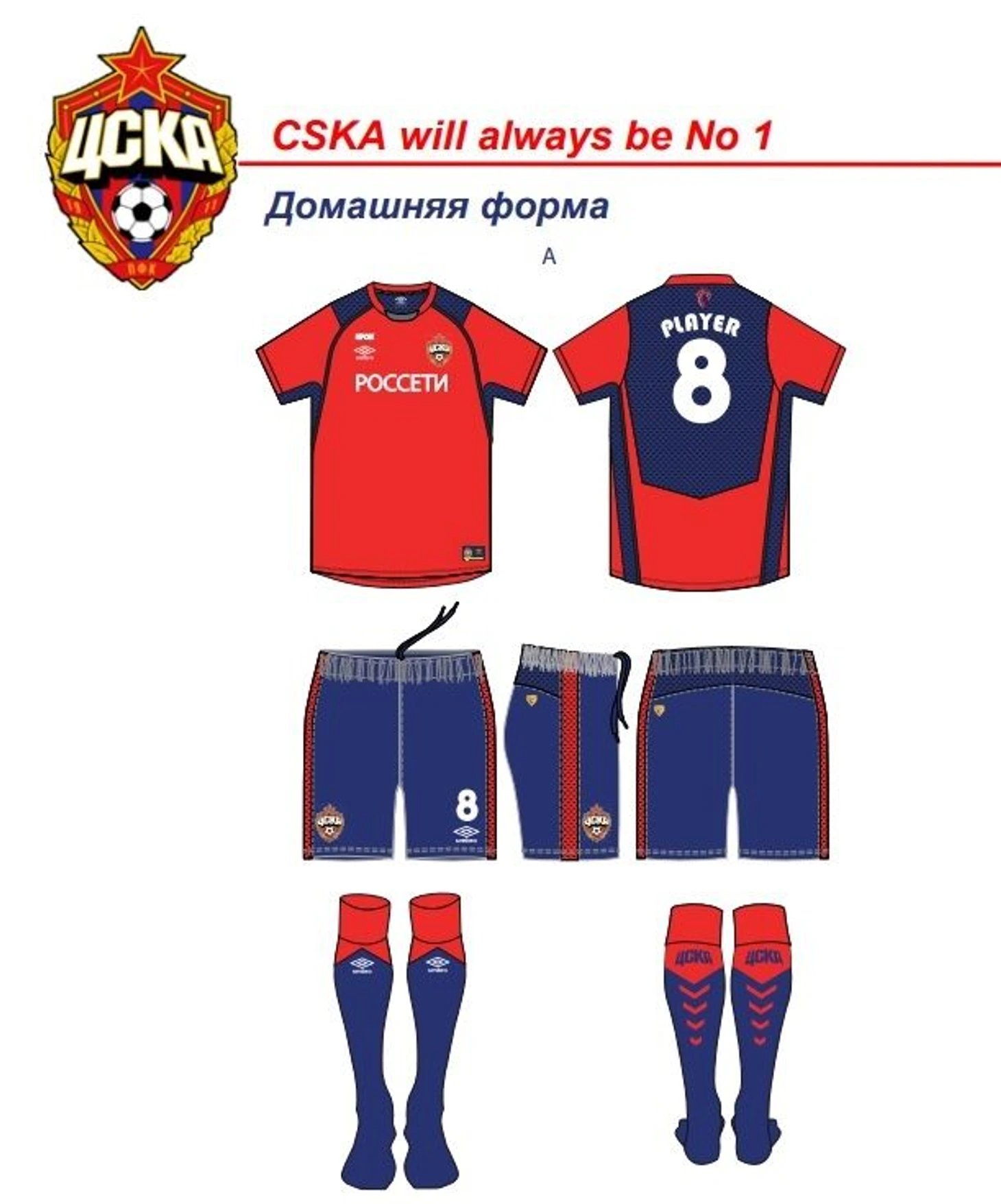 Шорты и гетры новой домашней формы ЦСКА будут выполнены в синем цвете с красными деталями.