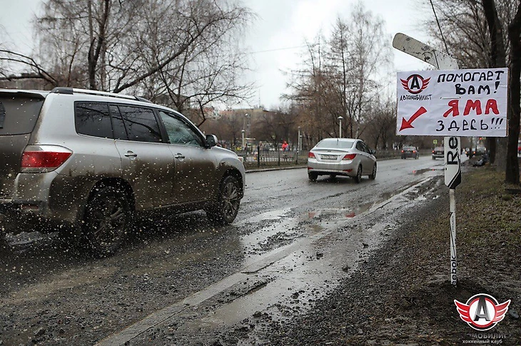 «Яма здесь». «Автомобилист» борется с плохими дорогами