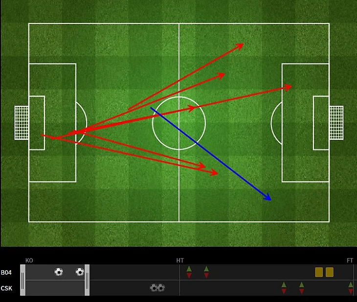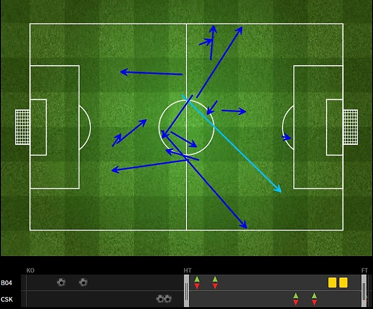 Во втором тайме Байер тоже начал резко, но сразу получил несколько быстрых контратак. После чего решил дальше не испытывать судьбу и сменил высокий прессинг на свои контратаки. ЦСКА забрал мяч и поднял центральную ось до нужного минимума. С этого момента Байер по сути ничего и не создал, а ЦСКА достаточно уверенно начал контролировать игру.