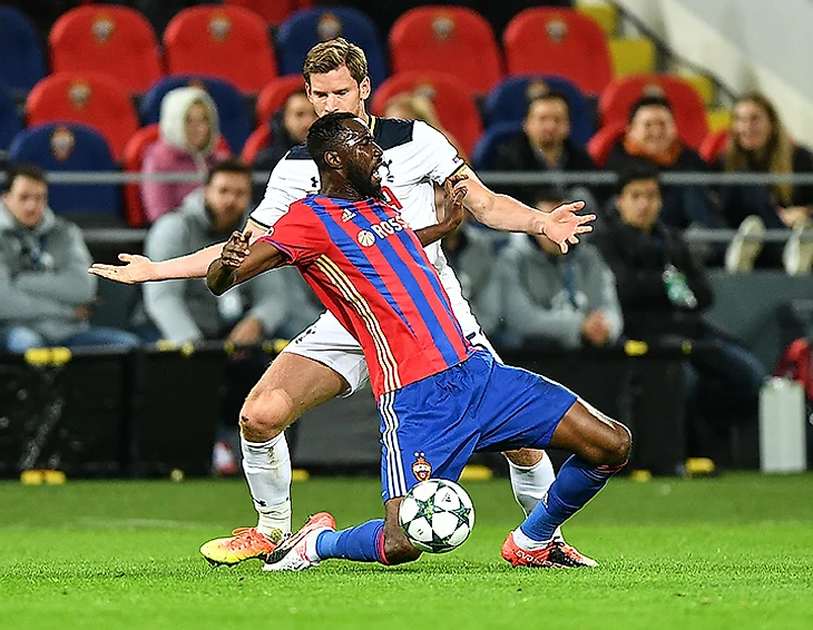 Матч против «Тоттенхэма» в этой связи ожидался с тревогой. Облегчили армейцам жизнь травмы, свалившиеся на игроков англичан. В Москву не приехали основные опорники лондонского клуба Эрик Дайер и Мусса Дембеле. Деле Алли, умеющий молниеносно врываться в штрафную соперника вторым темпом, был вынужден отойти в глубину поля, откуда угрожать воротам соперника гораздо сложнее. Кристиан Эриксен был привычно активен, 60 раз за первые 45 минут встретившись с мячом (второй показатель после Бена Дэвиса), однако забеганий в свободные зоны от своих игроков Почеттино дожидался крайне редко. Связано это как с пассивной игрой гостей, так и с очень низкой линией обороны ЦСКА. Пожалуй, единственный момент, характерный как для армейцев образца нескольких последних сезонов, так и для нынешнего «Тоттенхэма», произошел на 29-й минуте: