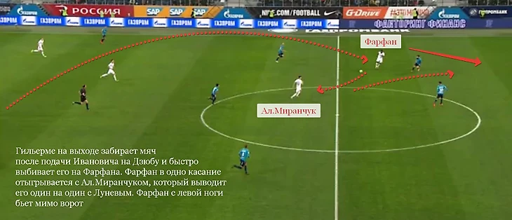 Второй тайм матча в Питере (3:0 с «Зенитом») стал одним из лучших для команды Семина в сезоне – в нем «Локо» использовал все самые сильные качества Фарфана за пределами чужой штрафной. После разгромной второй половины встречи никто не вспоминает о том, что было в первой – а зря. Кроме навесов «Зенита» и удара Ригони в штангу, была еще одна контратака «Локомотива».