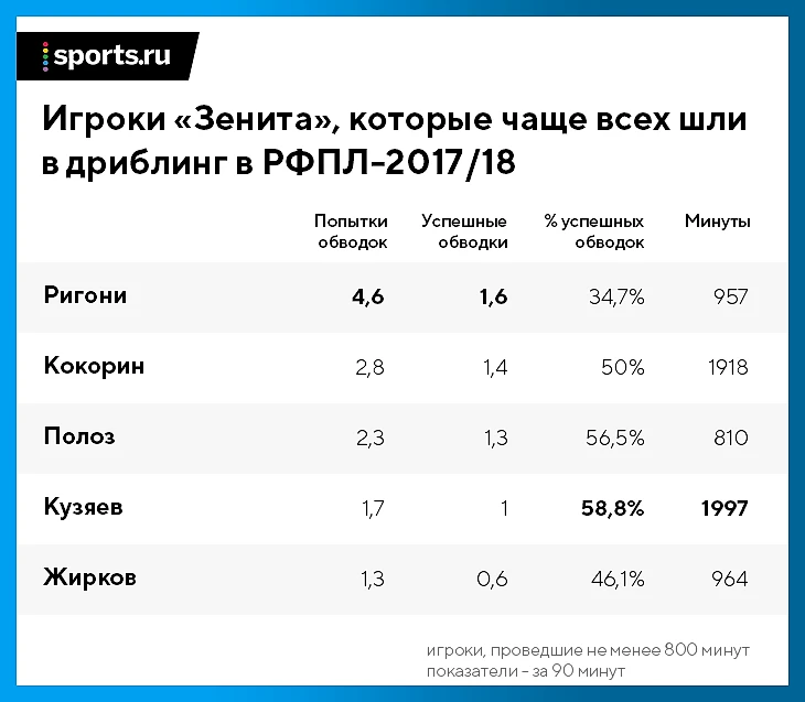 У Ригони есть минимум одно качество, которое могло сильно помочь «Зениту» в таких матчах – дриблинг. В прошлом сезоне Эмилиано шел в обводку чаще любого игрока питерцев.