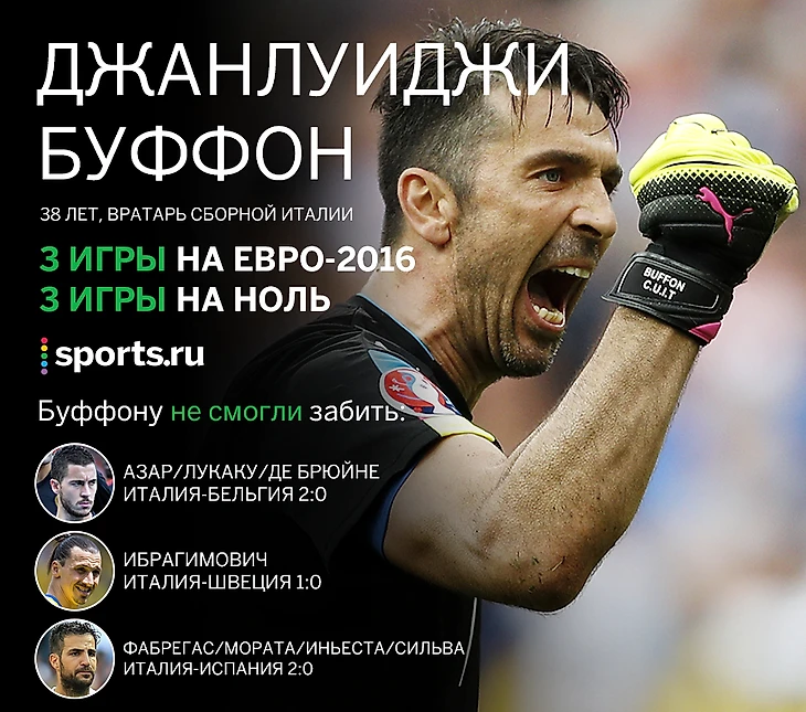Джанлуиджи Буффону 38, и он остается одним из лучших вратарей мира. Те, кто в этом по каким-то причинам засомневались, могут убедиться снова: на Евро-2016 Буффон пока не пропустил ни разу.