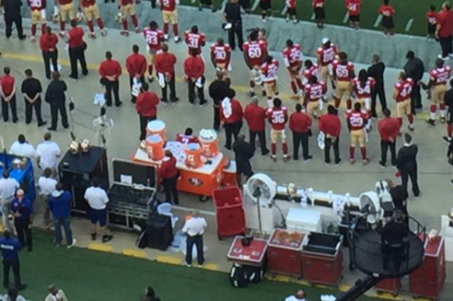 26 августа 2016 года в медийном пространстве США произошла вспышка – перед матчем с «Грин-Бэй» квотербек «Сан-Франциско» Колин Каперник демонстративно остался сидеть на скамейке запасных, когда зазвучал национальный гимн.