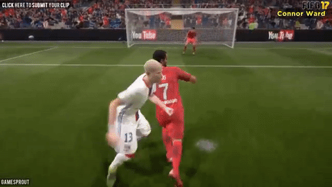 2. Уникальный движок FrostBite позволяет вратарям соперников подыгрывать вам в случае, если одиннадцатиметровый удар вы пробили, как игрок на гифке.