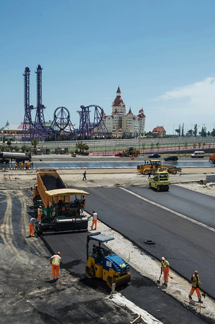 Укладка асфальта, песок на стартовой прямой, тематический парк и первые туристы на трассе «Сочи Автодром» – в фотографиях в блоге «Крутой поворот».
