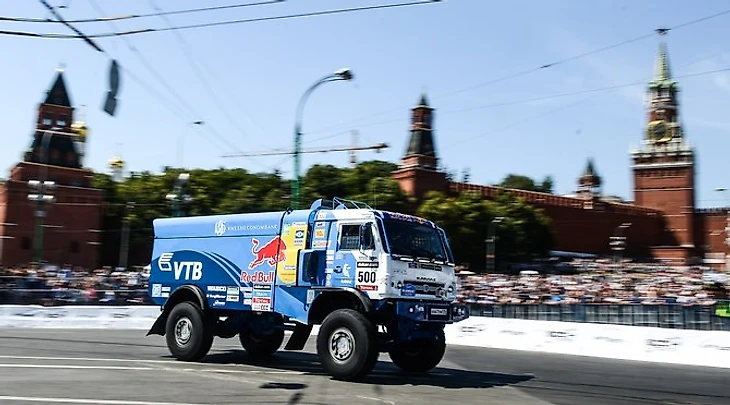 Гонщик команды «КАМАЗ-мастер», как обычно, порадовал публику эффектным пилотажем.