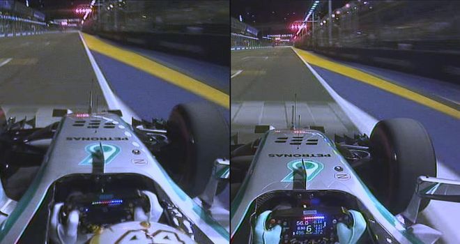 Пилот «Мерседеса» Льюис Хэмилтон выиграл квалификацию к Гран-при Сингапура, опередив напарника Нико Росберга всего на 0,007 секунды. Понять, сколько это – помогает сравнительная фотография.