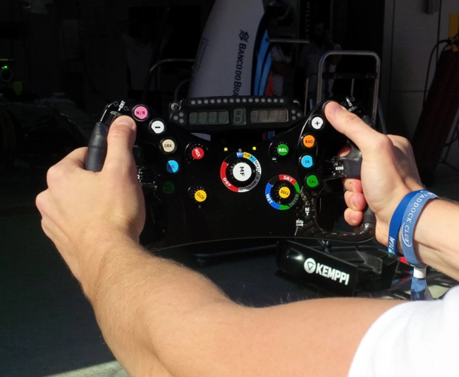 На пит-лейн всем желающим предлагали почувствовать руль болида «Формулы-1».