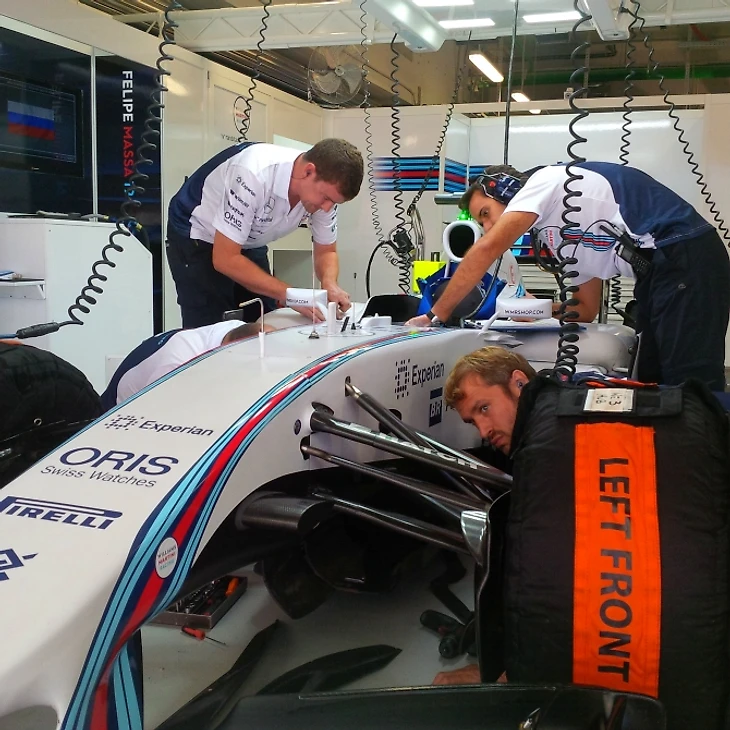 Кирилл Благов передает атмосферу гаража команды «Уильямс Мартини Рейсинг», которая готовится к Гран-при России.