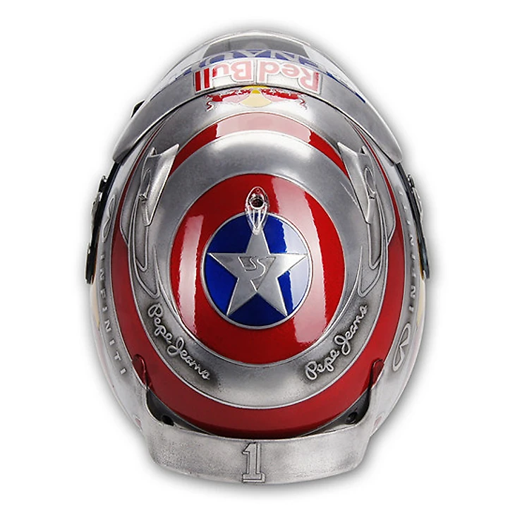 Четырехкратный чемпион «Формулы-1» Себастьян Феттель на Гран-при США привез шлем, раскрашенный в цвета героя комиксов вселенной Marvel, Капитана Америка.