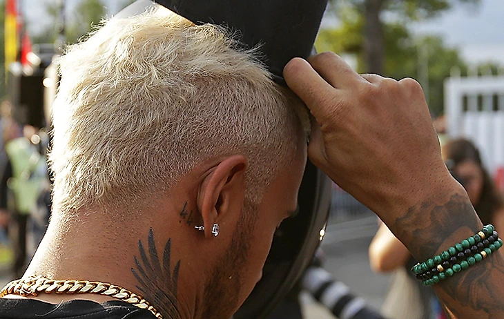 Двукратный чемпион мира «Формулы-1» Льюис Хэмилтон продолжил эксперименты с имиджем. На Гран-при Италии англичанин появился с татуировкой на шее в виде орла, а также новым цветом волос.