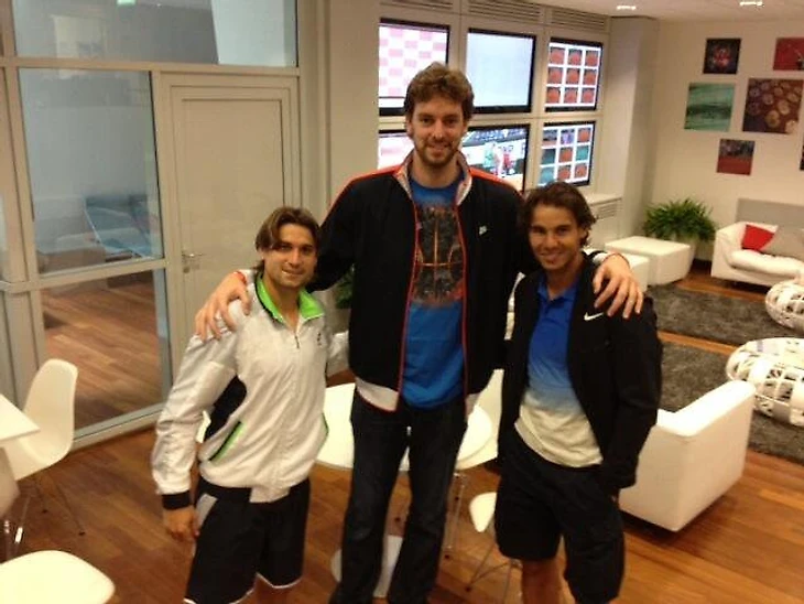 Пау Газоль с двумя теннисистами: Дэвидом Феррером и Рафаэлем Надалем
