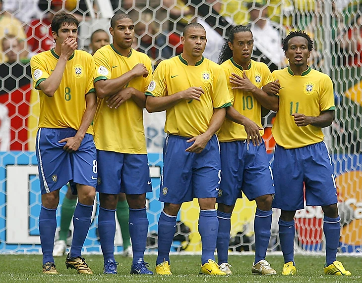 Сборная Бразилии на ЧМ-2006: Кака, Адриано, Роналдо, Роналдиньо и Зе Роберто.