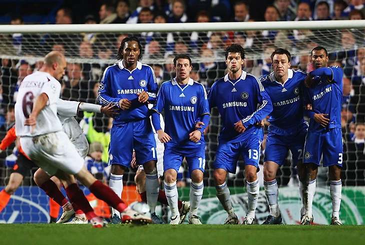 Штрафная стенка «Челси»-2008: Дидье Дрогба, Уэйн Бридж, Михаэль Баллак, Джон Терри и Эшли Коул.