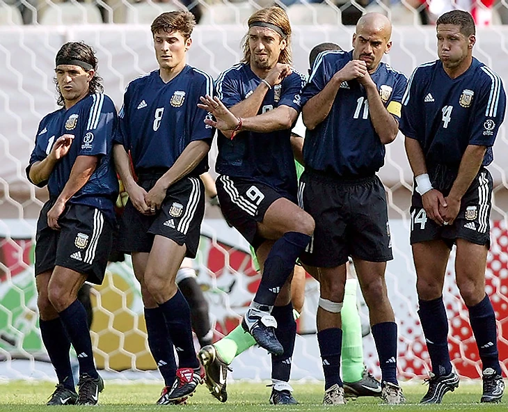 Аргентна на ЧМ-2002: Ариэль Ортега, Хавьер Дзанетти, Габриэль Батистута, Хуан Верон и Диего Симеоне.