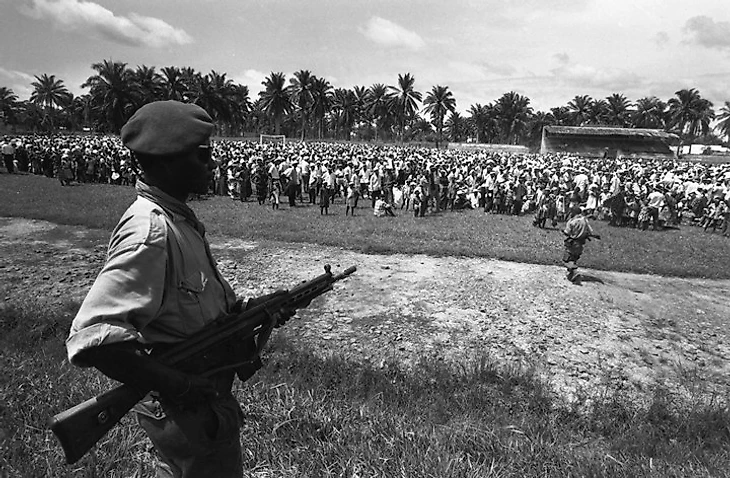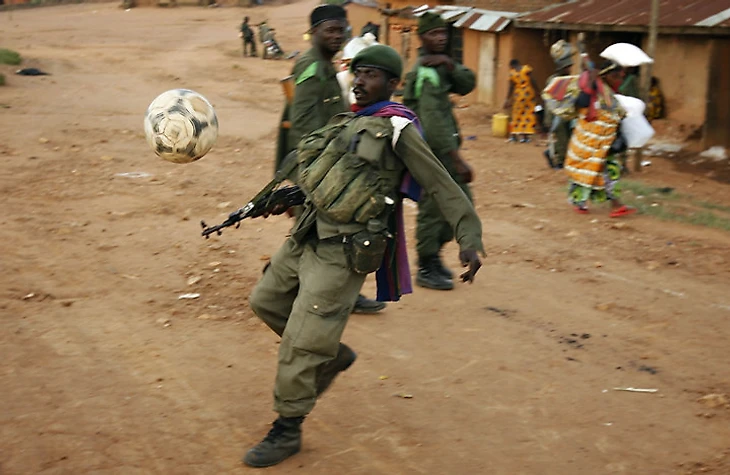 2008 год, Конго, гражданская война. Правительственные войска после боев в деревушке Кайна.