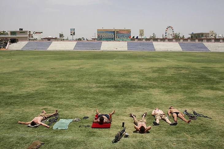 2008 год, Кандагар (Афганистан). Британские солдаты на футбольном стадионе.