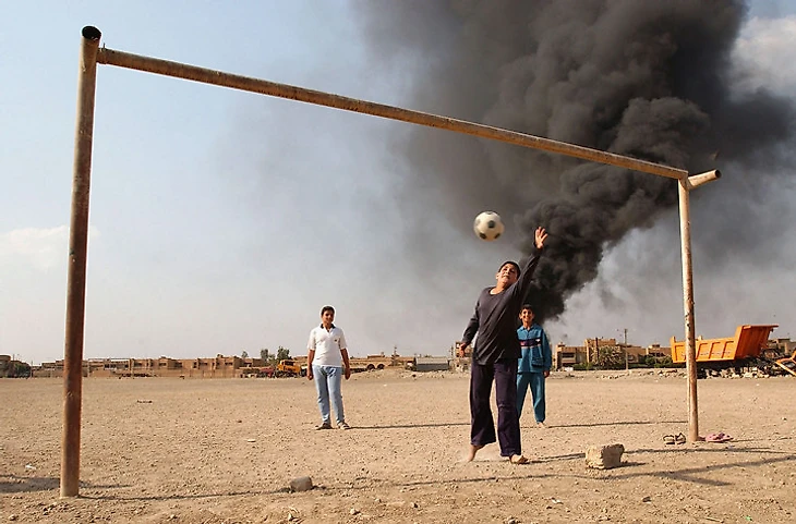 2016 год, недалеко от Мосула (Ирак). Боевики ИГИЛ (организация запрещена в России), отступая, подожгли город, но не смогли выжечь оттуда футбол.