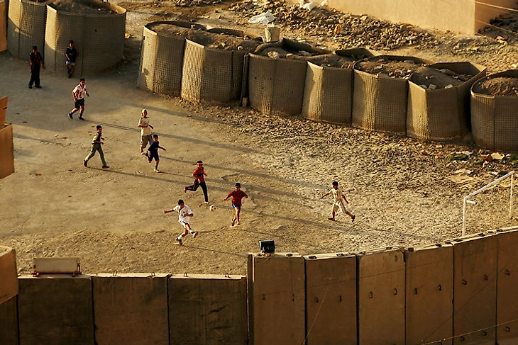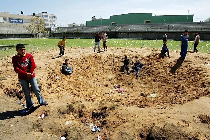 2006 год, Газа. Палестинские подростки на футбольном стадионе после обстрелов израильской авиации.