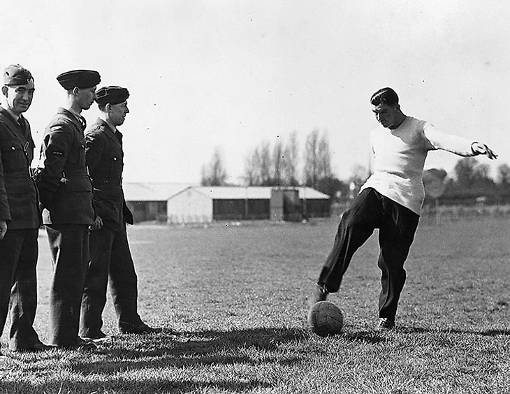 1941 год. Знаменитый форвард «Арсенала» Тед Дрейк служит в британской армии инструктором по физподготовке и показывает летчикам Королевских ВВС, как надо бить по мячу.