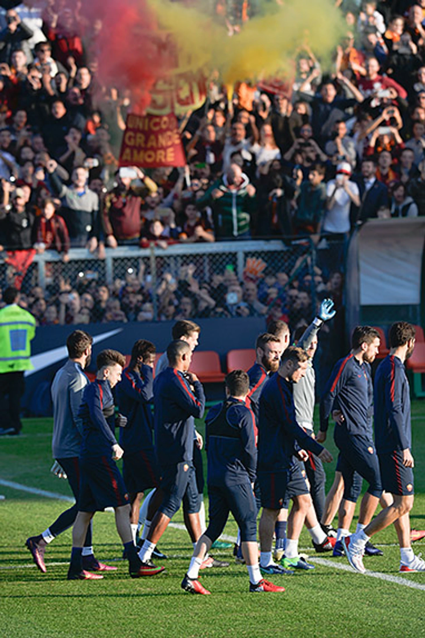 В воскресенье «Рома» в римском дерби обыграла «Лацио». В понедельник Лучано Спаллетти перенес тренировку на Stadio Tre Fontane, где играет молодежная команда, и сделал ее открытой.