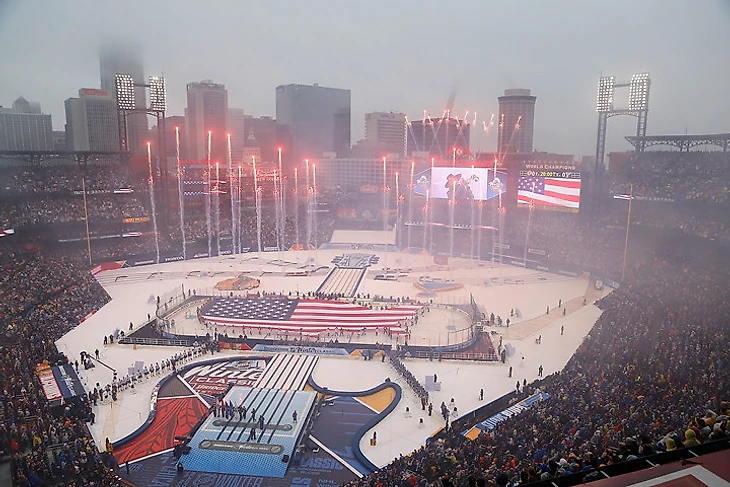 Время начала этой «Зимней классики» могло быть перенесено из-за погодных условий, однако в итоге команды вышли на лед вовремя.