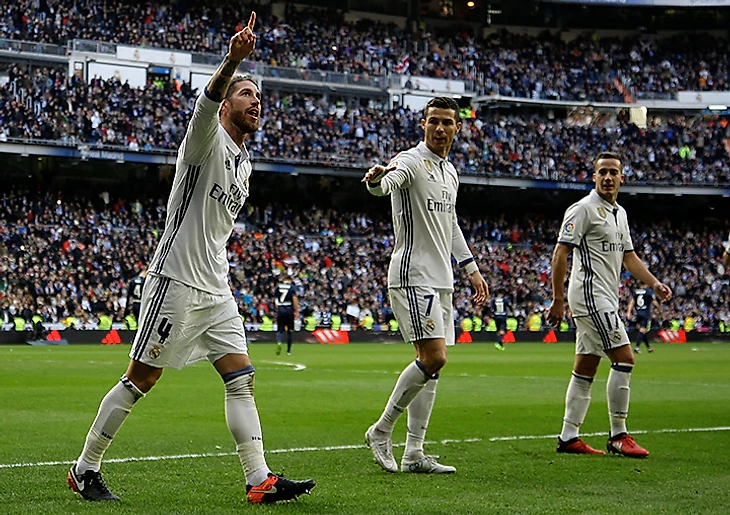 3. «Реал Мадрид» – 98 голов (51 в ла лиге + 16 в ЛЧ + 22 в Кубке Испании + 6 на клубном ЧМ + 3 в Суперкубке Европы) в 34 матчах