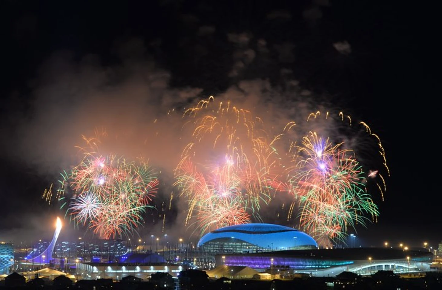 Салют над стадионом «Фишт» в Олимпийском парке. Так открывалась, возможно, самая красивая Олимпиада