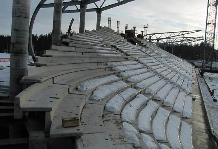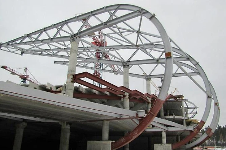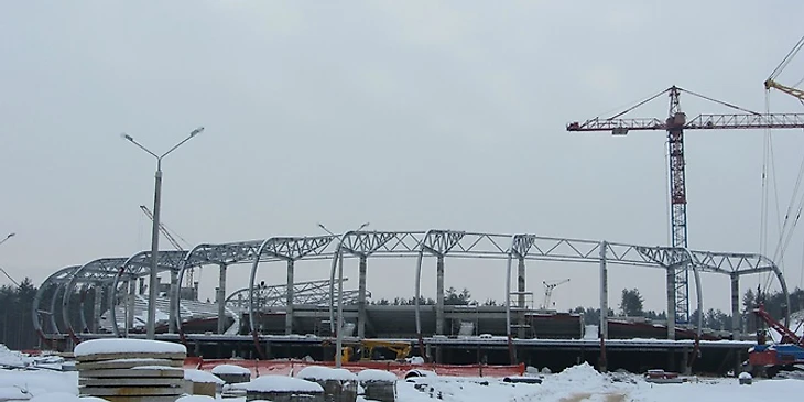 В октябре 2012 года это было поле в лесу без света, воды и канализации. Сегодня стадио со всей инфраструктурой, дорогами, развязками и парковками. Кое-где сваи в два раза дольше забивали в готовую площадку, куда даже не надо было ничего проводить из коммуникаций