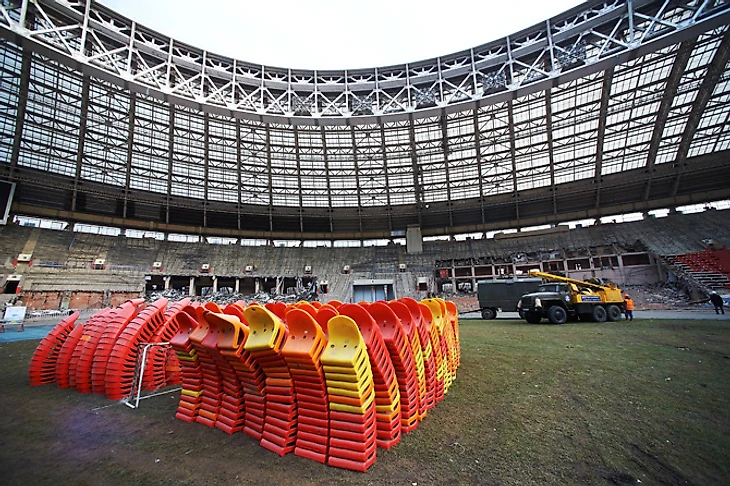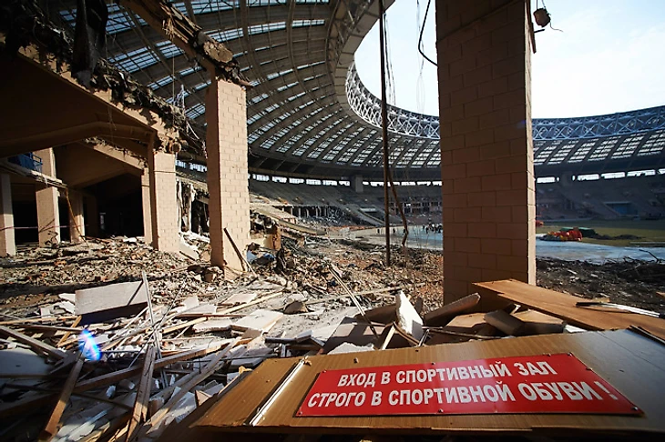 «Лужники» продолжают реконструировать к ЧМ-2018, внутри чаши разрушено практически все, спешите увидеть.