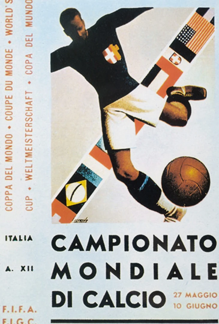 Постер второго чемпионата мира по футболу, который прошел в 1934 году в Италии.
