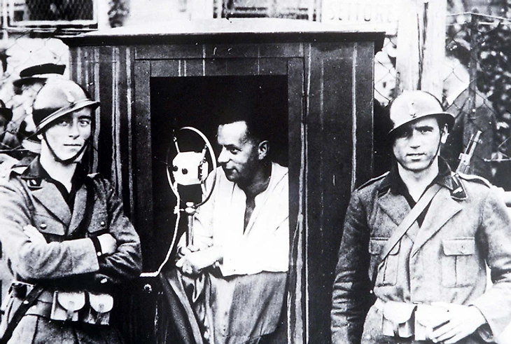 Так на ЧМ-1934 выглядели комментаторские позиции.