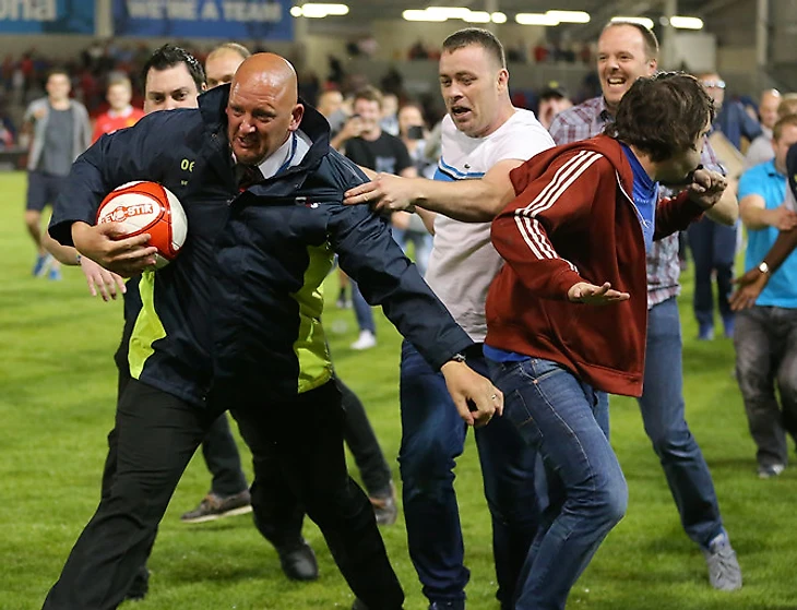 Матч собрал почти 12 тысяч зрителей, некоторые из которых не сумели справиться с собой и выбежали на поле потрогать кумиров.