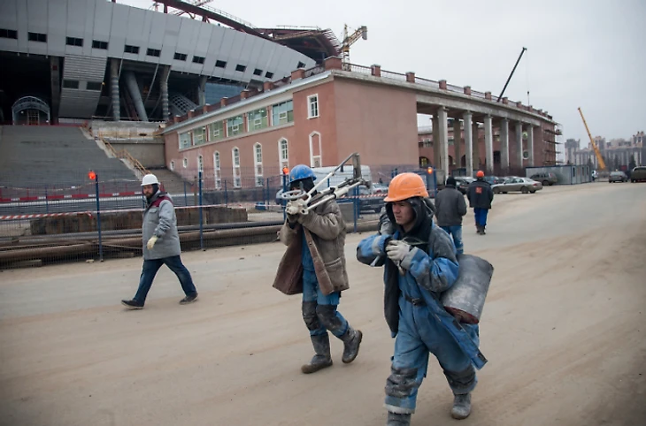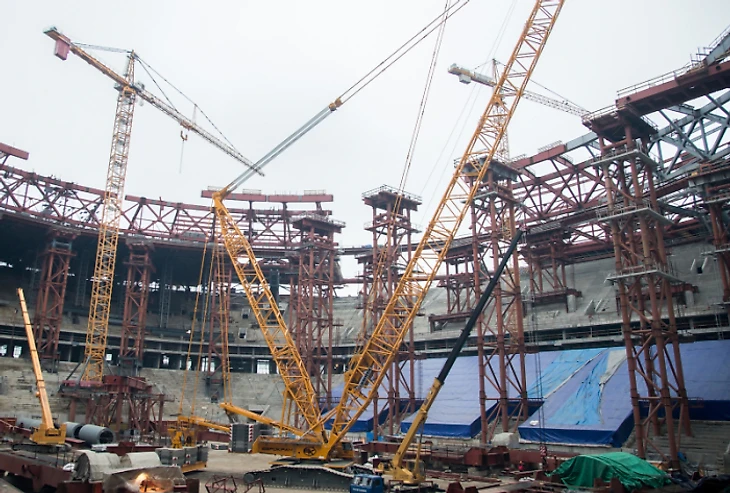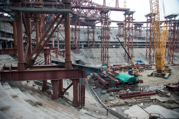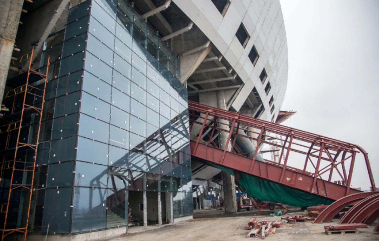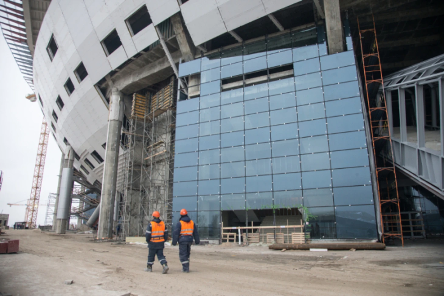 Коллеги, этот стадион строят в России и испытывают те же трудности, через которые проходит любая стройка в нашей стране: изменения в проекте, согласования, плохие грунты, проблемы с рабочими и т.д...