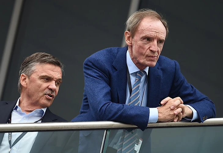 Глава Международной федерации хоккея (IIHF) Рене Фазель и почетный член Международного олимпийского комитета Жан-Клод Килли (справа).