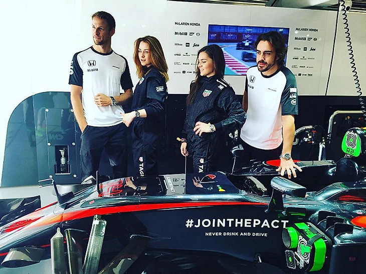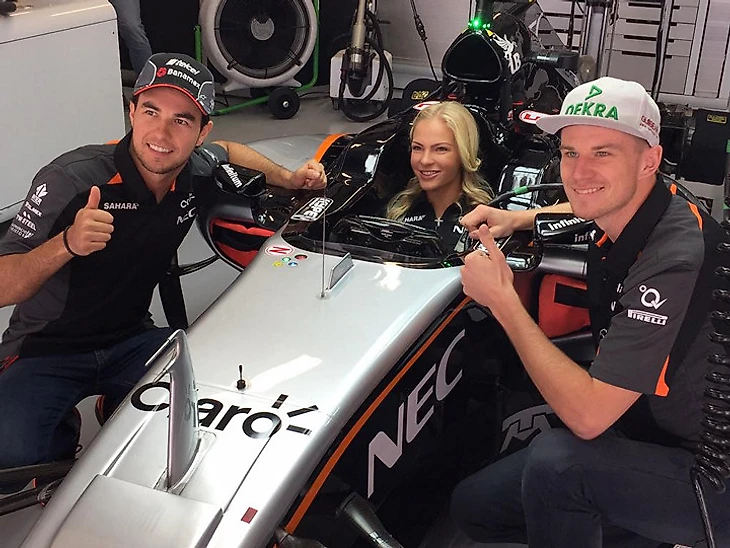 Прыгунья в длину Дарья Клишина принесла удачу «Форс-Индии» – Серхио Перес (слева) финишировал на подиуме. Счастливое руководство команды пригласило девушку на оставшиеся гонки сезона.