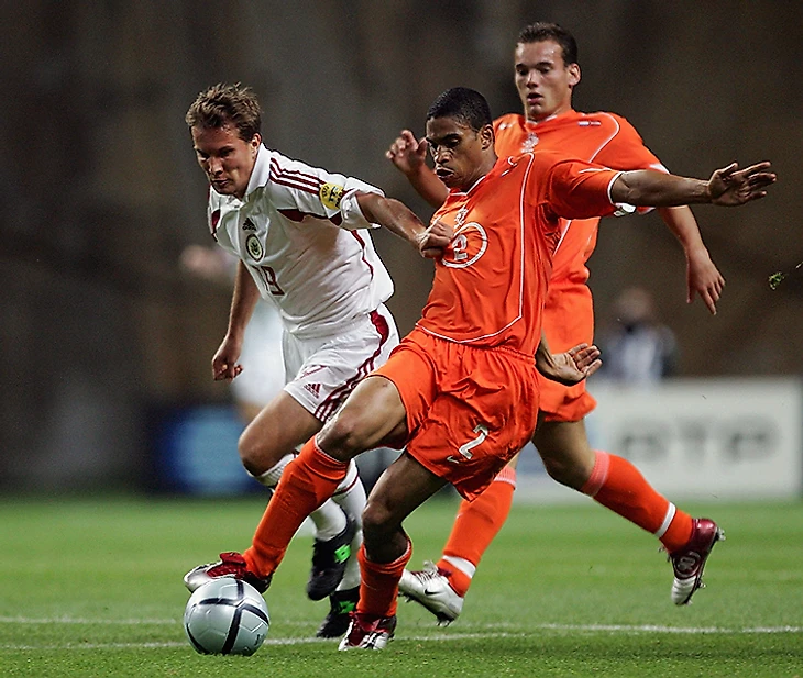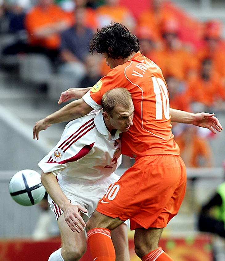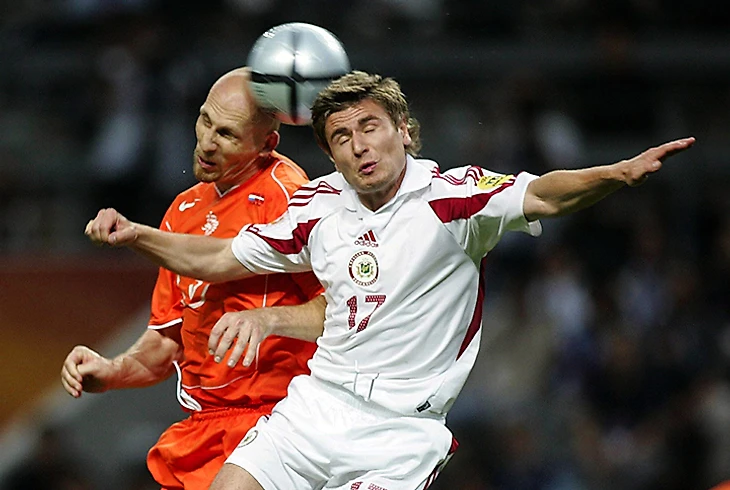 Защитник Игорь Степанов и Руд ван Нистелрой. Степанов перед Евро провел 17 матчей за лондонский «Арсенал», потом были Бельгия, Швейцария, Россия, Дания и Германия, а сейчас Степанов тренирует юношескую сборную Латвии.